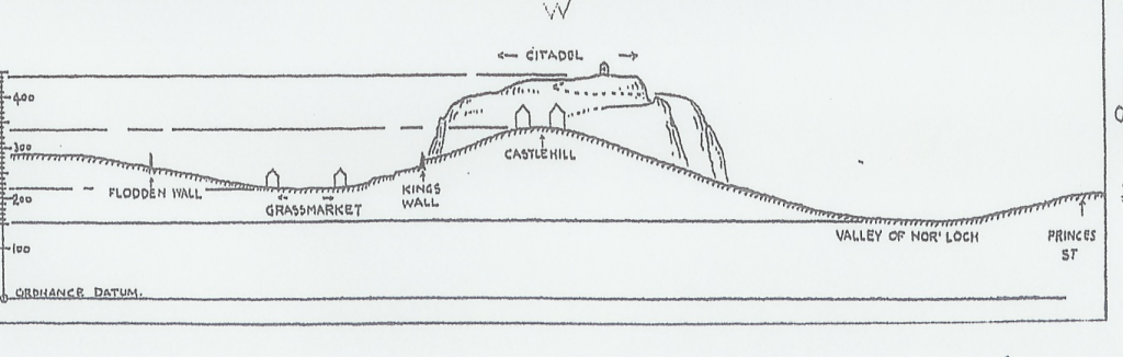- on the north side (Princes St. side) it was at the end of the first set of plots, as the steepness of the incline prevented it going any further, and the Nor’ Loch, a man-made lake where the railway line and the lower parts of Princes St Gardens are now situated, provided a natural boundary;