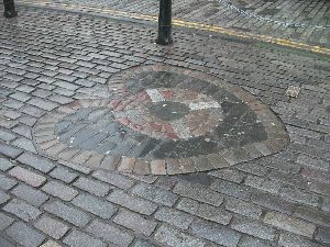 Both the Luckenbooths and the Tolbooth were eventually demolished in 1817. The outline of a heart set into the High St. today marks the spot of the main entrance to the Tolbooth, as shown below.