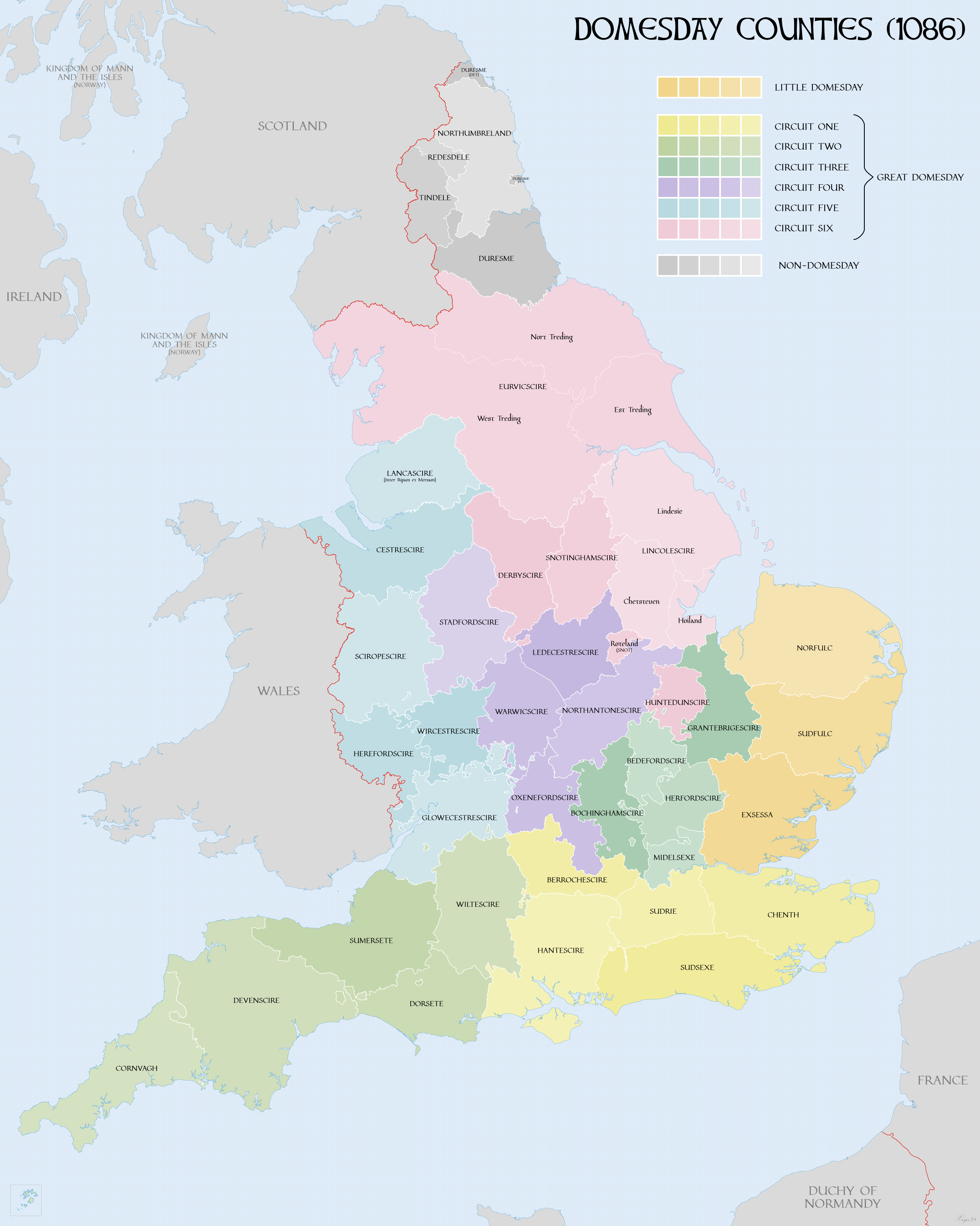 William, who was spending Christmas in 1085 at Gloucester, met there with his royal council and, according to the Anglo-Saxon Chronicle, “Then sent his men over all England into each shire; commissioning them to find out how many hundreds of hides were in the shire, what land the king himself had, and what stock upon the land; or, what dues he ought to have by the year from the shire.”