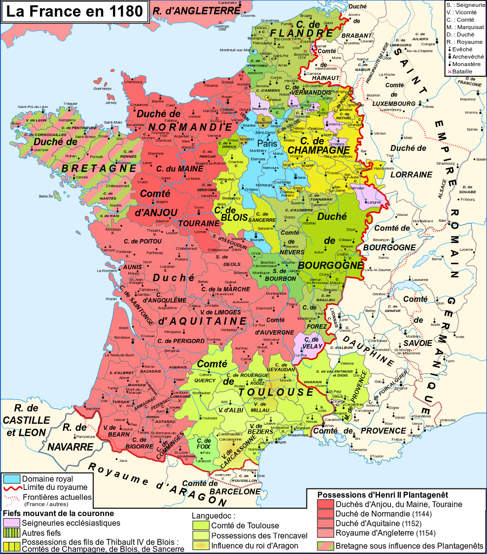 Viewed as a group it can be said that the kings in our period were largely absentee monarchs. France, although it had a king, was dominated by the rulers of the individual regions who were constantly in conflict with each other, and with the French king. The turmoil meant that the English kings frequently needed to be on hand to deal with ongoing problems in their French territories. Initially, it was just Normandy, but by the time we reach Henry II, he also controlled Anjou, Aquitaine and Gascony. Note that Gascony, which is not shown separately on the map, covers the area to south and west of Bordeaux.