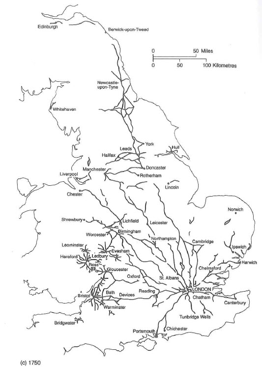 The poor state of roads in England in the 17th century, particularly the main roads out from London to other towns and cities, began to affect the transportation of goods in the country’s growing economy, not least because cargo-related traffic exacerbated the condition of those roads. This ultimately led to the erection of turnpikes, stretches of maintained road which you had to pay to use. The first turnpike was between Wadesmill and Stilton on the Great North Road in 1656.