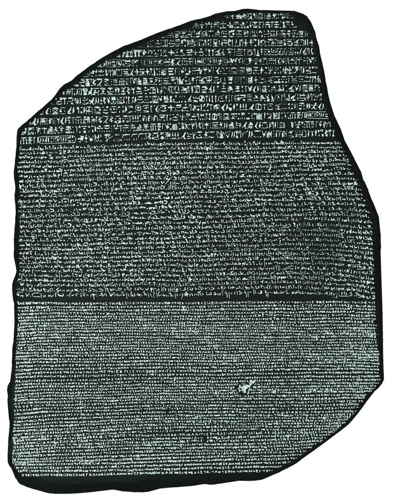 The Rosetta Stone, which is kept in the British Museum, features the same decree, written in Egyptian hieroglyphs, the demotic script and Ancient Greek.