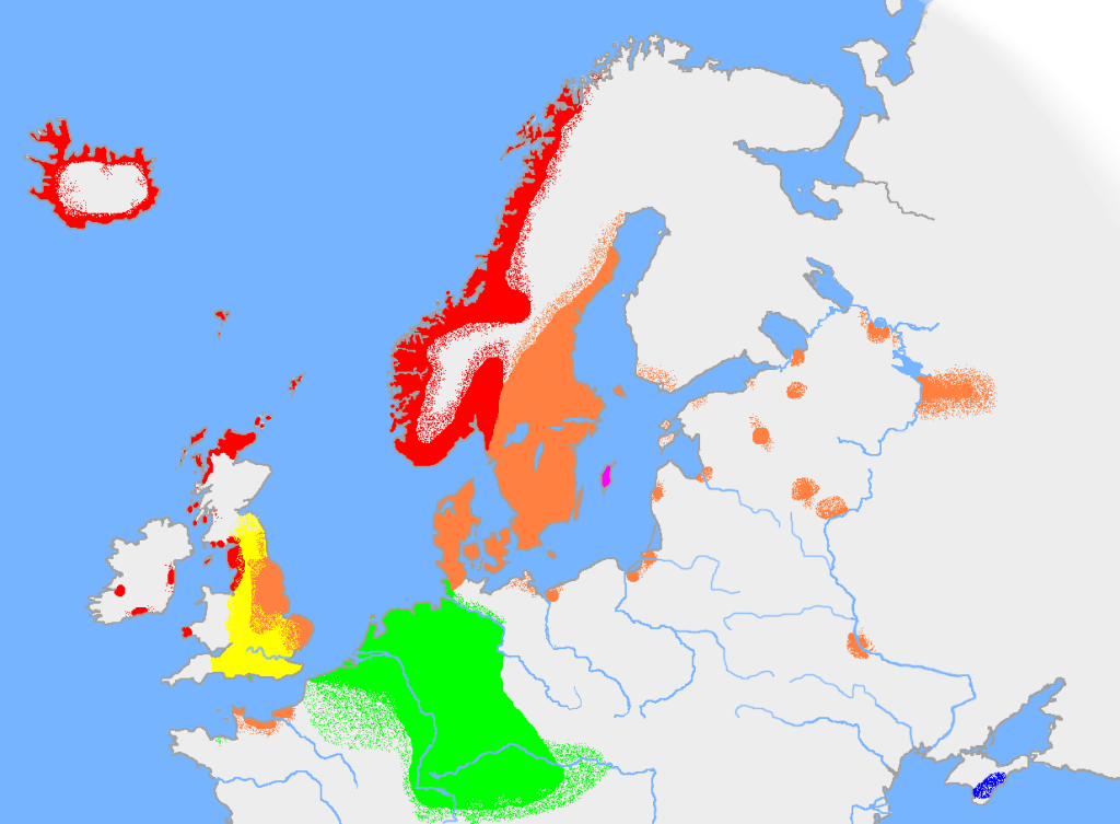 Gothic was spoken in the east by the Ostrogoths and Visigoths between the 4th and 7th centuries CE. High German was spoken in central and southern parts, becoming one of the world’s great cultural languages, while Low German was spoken in the west and northern lowlands, leading to English, German and Dutch. The branch continued up through Scandinavia, including variants of Norse.
