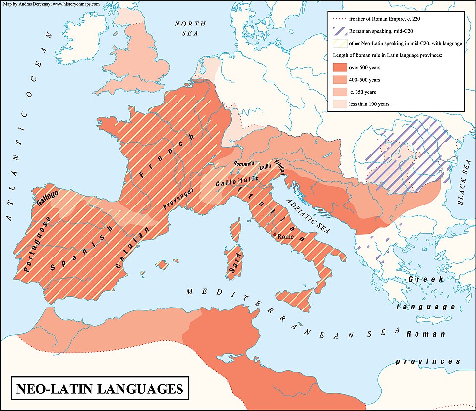 Spoken Vulgar Latin, as it is known, continued to evolve on top of local languages across the Roman Empire, eventually creating the Romance family of languages. Each daughter language was spoken in proto-forms for many centuries before finally being entrusted to parchment: French in the 9th century; Italian in the 10th century; Provençal of southern France a century later; the three Ibero-Romance languages Spanish, Portuguese and Catalan in the 12th century; and Romanian in the 16th century.