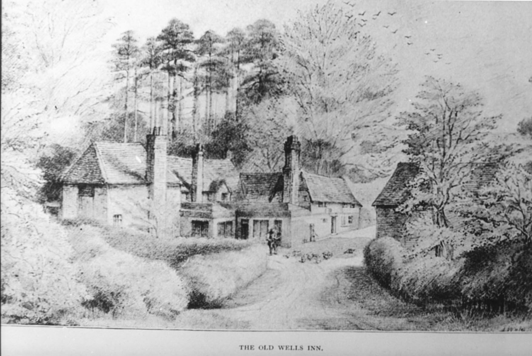The Wells Inn predates this period of fame. The building was originally a farmhouse with a fireplace that was dated 1557. Taking the waters there became very popular, helped by the fact that Queen Anne and other royalty had used it, and by its general location near to London. The inn naturally expanded as a result of this success, having a long ballroom and breakfast room by the 1750s.
