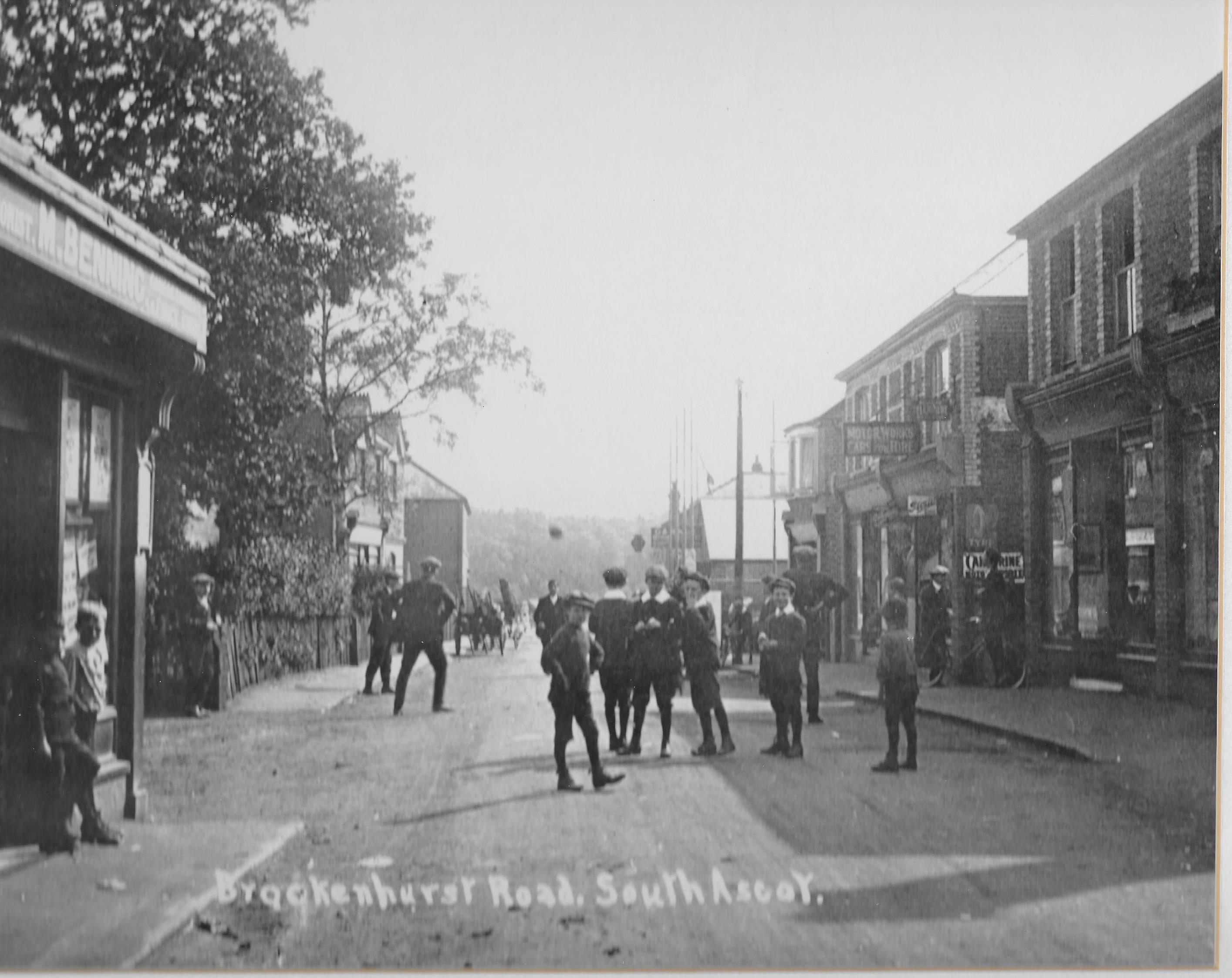 A local resident researched and wrote this detailed history, which covers the area around The Stag pub on Ascot High Street up to the racecourse from the 1860s to the 1930s. The area is shown in the accompanying photo, which was taken in 1923 during Royal Ascot. The history includes information on some of the relevant individuals, buildings and infrastructure.