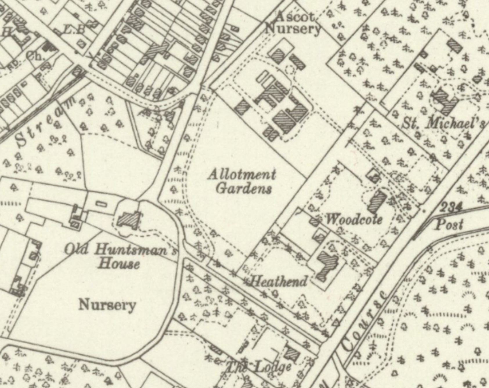 What about Ascot, which has not been mentioned so far? East Cote was its Saxon name. References can be found to Estcota (east cottage) in the 12th century (1177), Ascote and Archecote in the 13th century and Astcote or Askote in the 14th century. It was part of the Ripplesmere Hundred and was described as a desolate place. The whole area from Bagshot up to Ascot was bleak and relatively isolated. Unsurpisingly, it attracted robbers who preyed on people who were travelling through the area. There are two reports of highwaymen being shot and killed there by their would-be victims in the 18th century. John Walsh of Warfield Park, once the secretary to Lord Clive (of India), was one person who reportedly shot a highwayman. The royal buckhounds used in hunting were originally kennelled near Swinley Bottom before they were moved around 1790 to the site of the Old Huntsman’s Lodge off the Windsor Road in Ascot. Hence, we have Kennel Avenue and Kennel Ride.